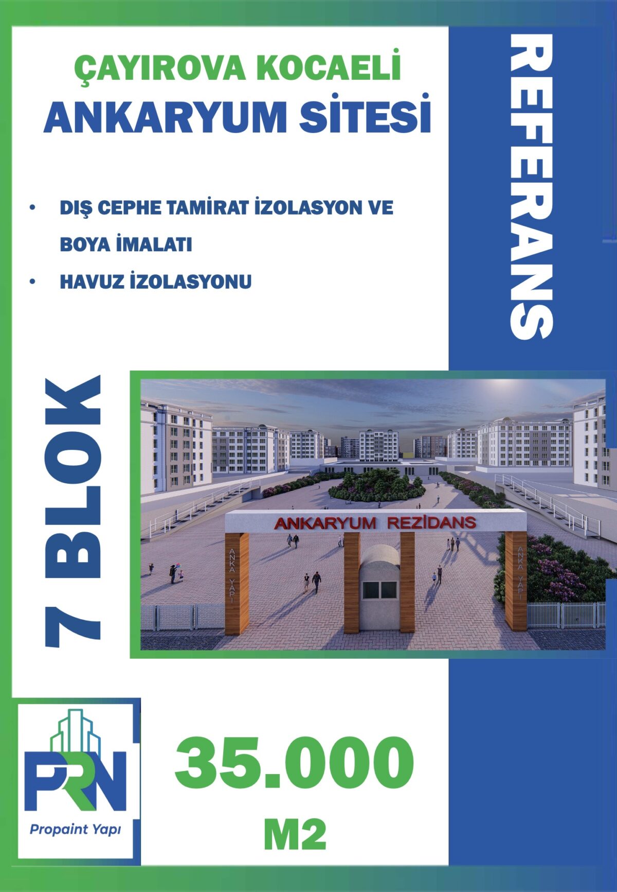 Proje: ÜMRANİYE AZAK SİTESİ Metraj: 13.000 M2 (2 BLOK) Tarih: 20.06.2021 Yapılan Çalışma: Dış cephe onarım izolasyon ve boya imalatı