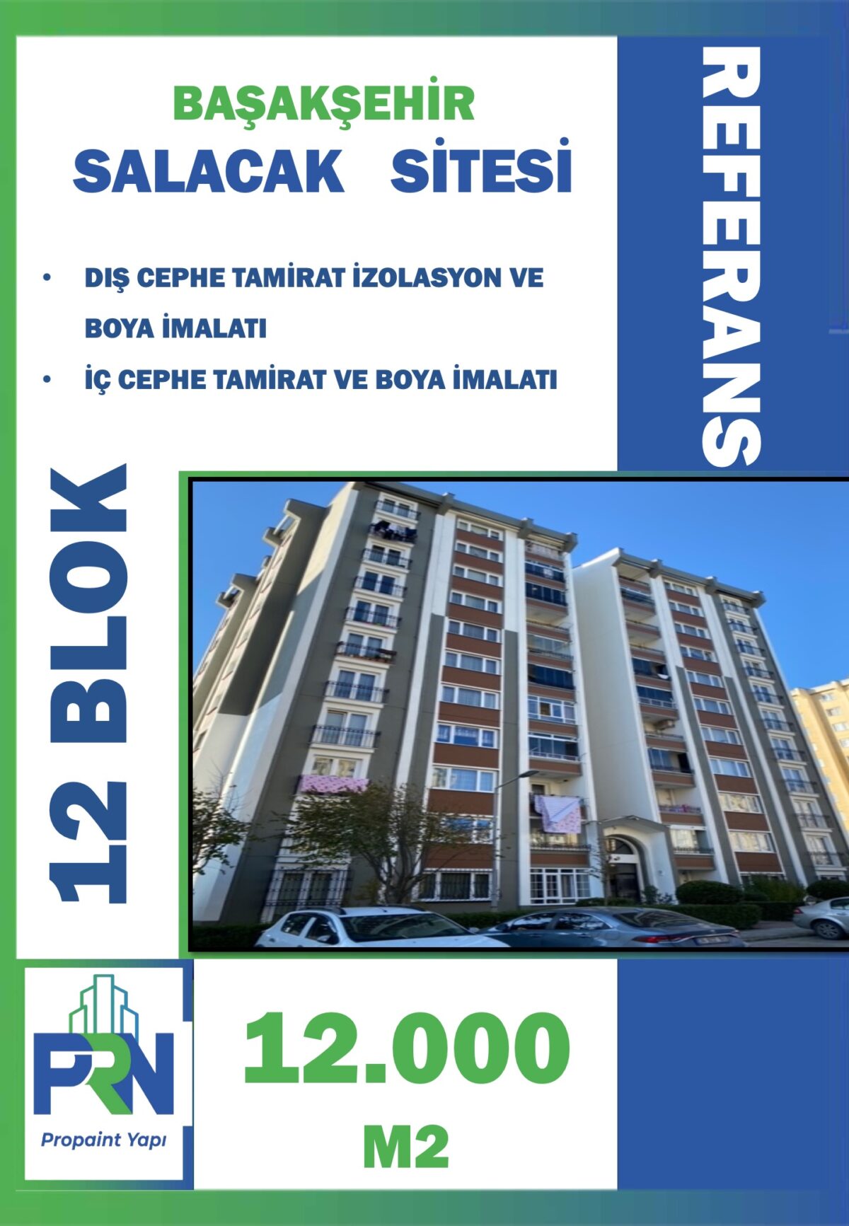 Proje: Başakşehir Salacak Evleri A-8 Blok Metraj: 6.500 m2 Yapılan Çalışma: Tüm Dış ve İç Cephe Yalıtım Boya İmalatları
