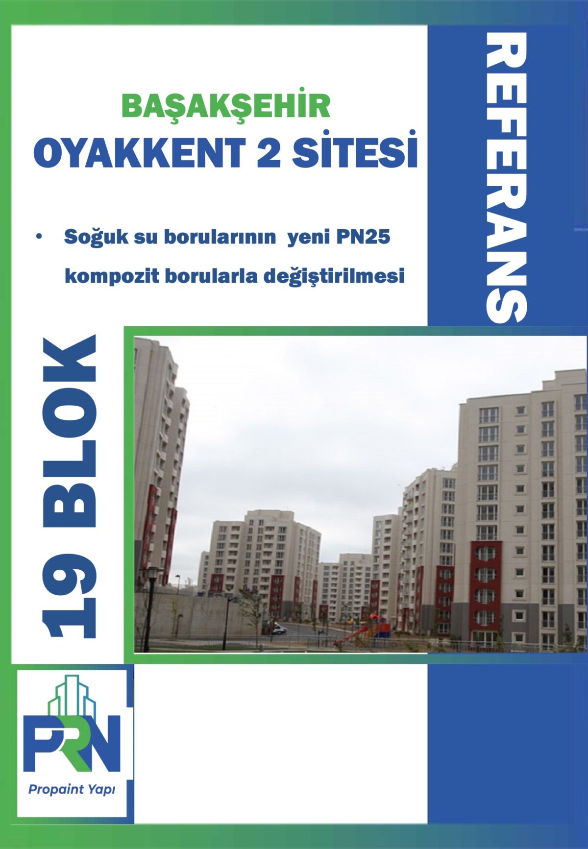 Proje: BAŞAKŞEHİR OYAKKENT 2 SİTESİ Metraj: (19 BLOK) Tarih: 05.07.2021 Yapılan Çalışma: Soğuk su borularınınyeni PN25 kompozit borularla değiştirilmesi